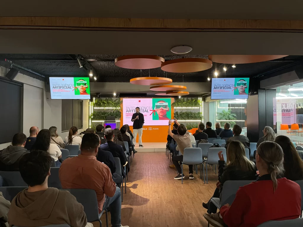 No dia 18 de setembro, a HOTMILK — ecossistema de inovação da PUCPR — recebeu o especialista em inteligência artificial, inovação e liderança Gui Zanoni para a palestra “IA estratégica para líderes: decisão, pessoas e performance”, que contou com a participação de 50 pessoas entre executivos, gestores, fundadores de startups, consultores e estudantes.